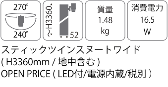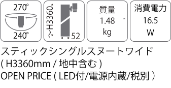 灯具は水平270°・垂直240°の可動域で自由に角度調整が可能。